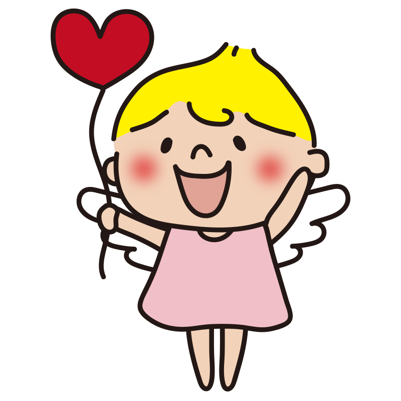 ハートの風船を持っている天使(ピンク)