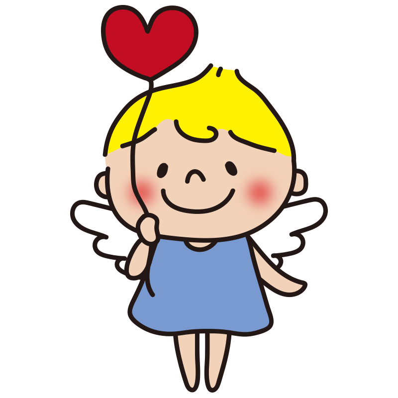 ハートの風船を持っている天使(青)