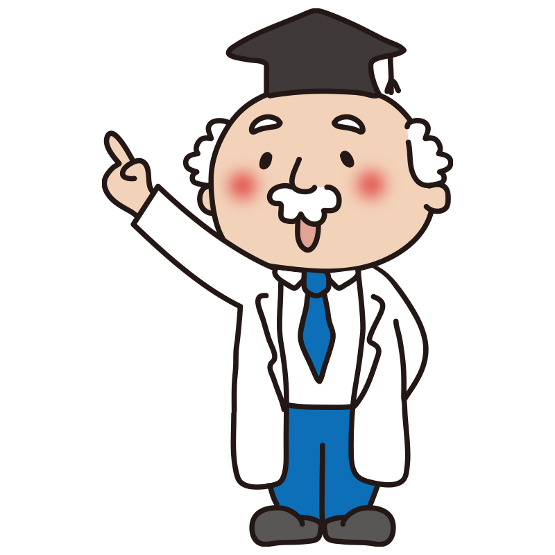 斜め上を指さす博士