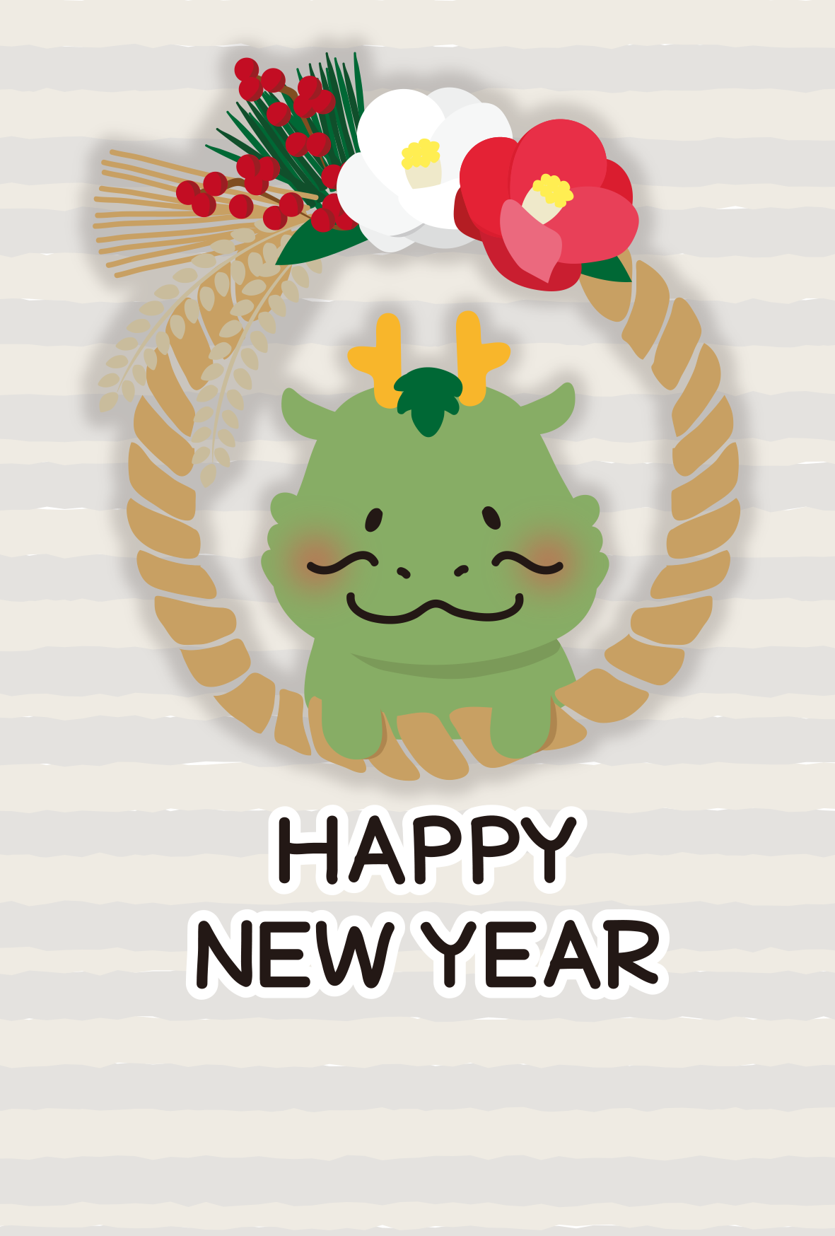 【年賀状】しめ縄から顔を出すかわいい龍の顔はめ
