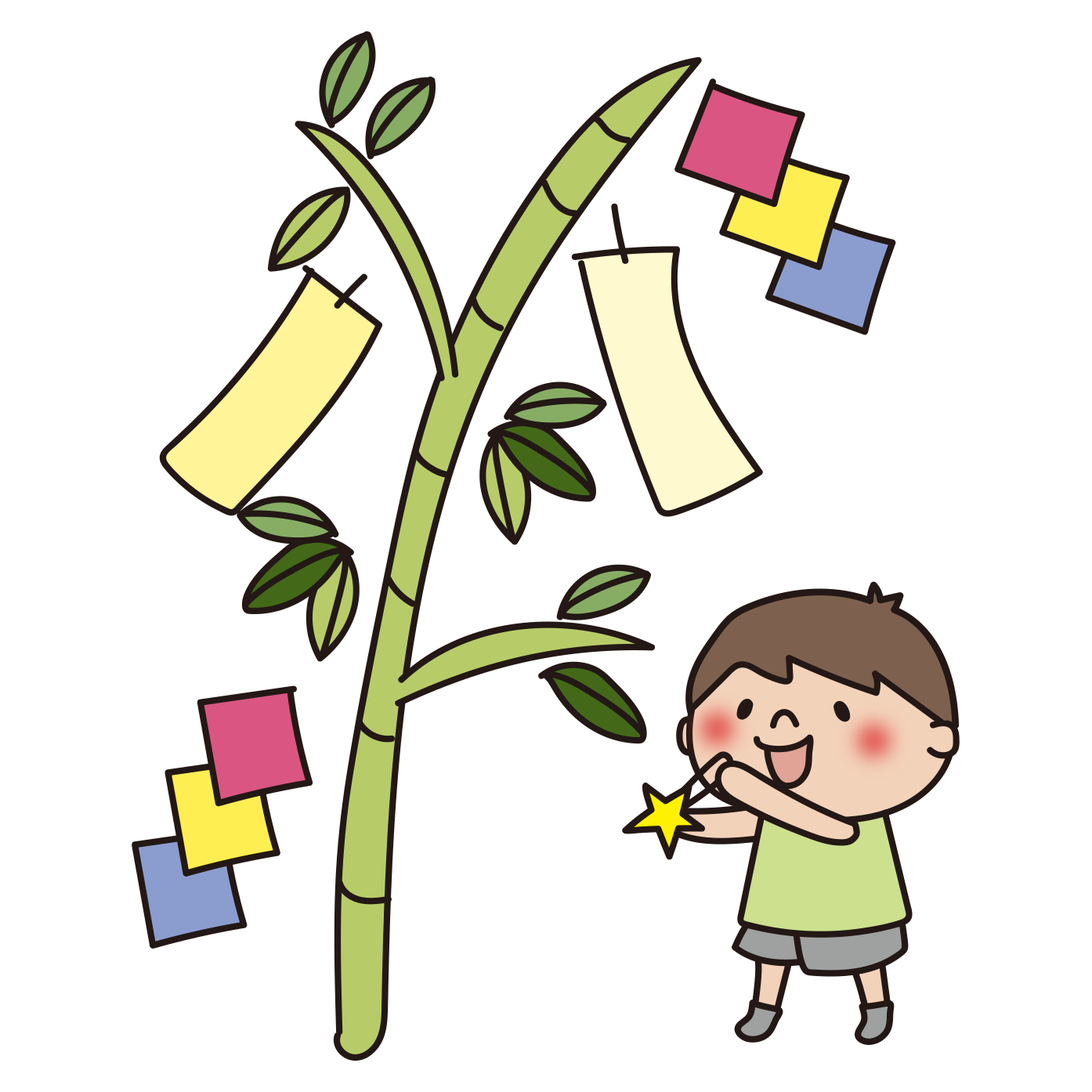 七夕飾りを飾る子供(男の子)