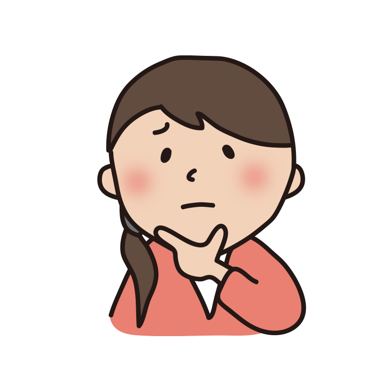 顎に手を当てて考える困り顔の女の人