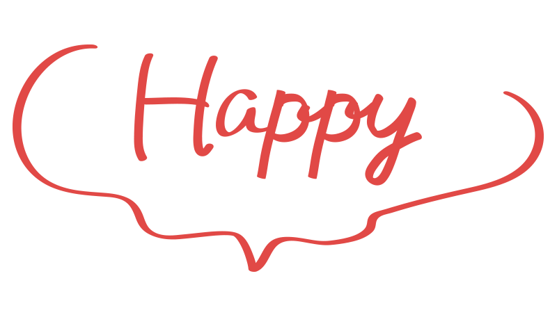 ふわふわしたゆるい吹き出しの中にハッピーの文字(赤)