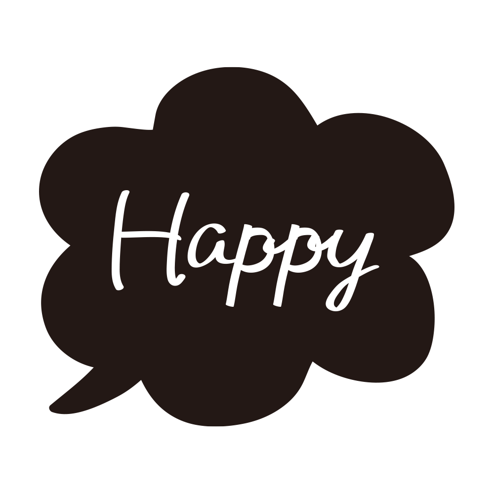 ふわふわの吹き出しの中にハッピーの文字(黒)