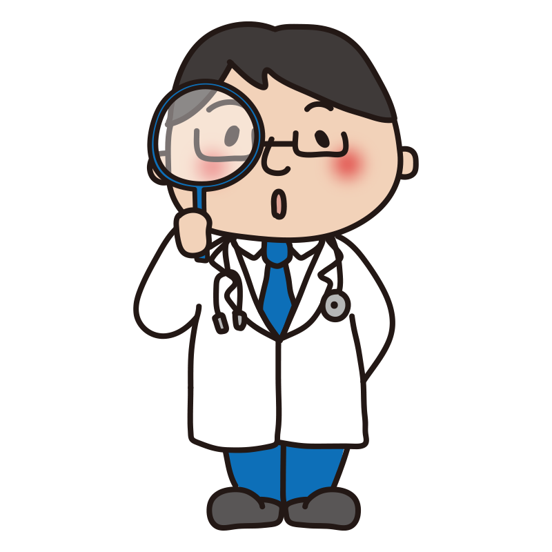 虫眼鏡で観察する男性医師