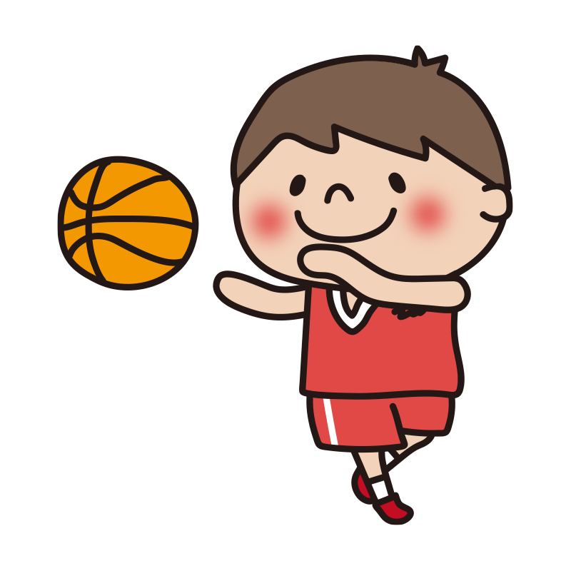 バスケットボールでパスをする子供(男の子)