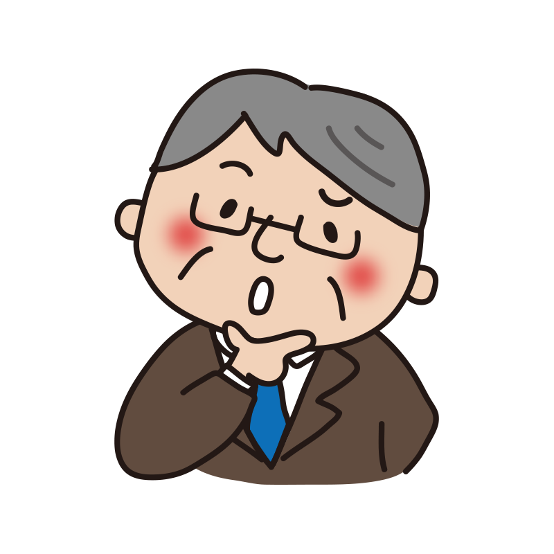 首をかしげる茶色いスーツを着た眼鏡のおじさん
