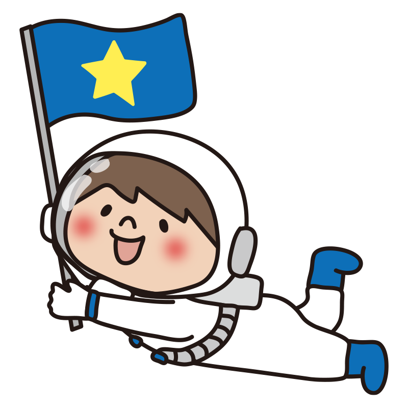 宇宙服を着て旗を持って浮かんでいる子供
