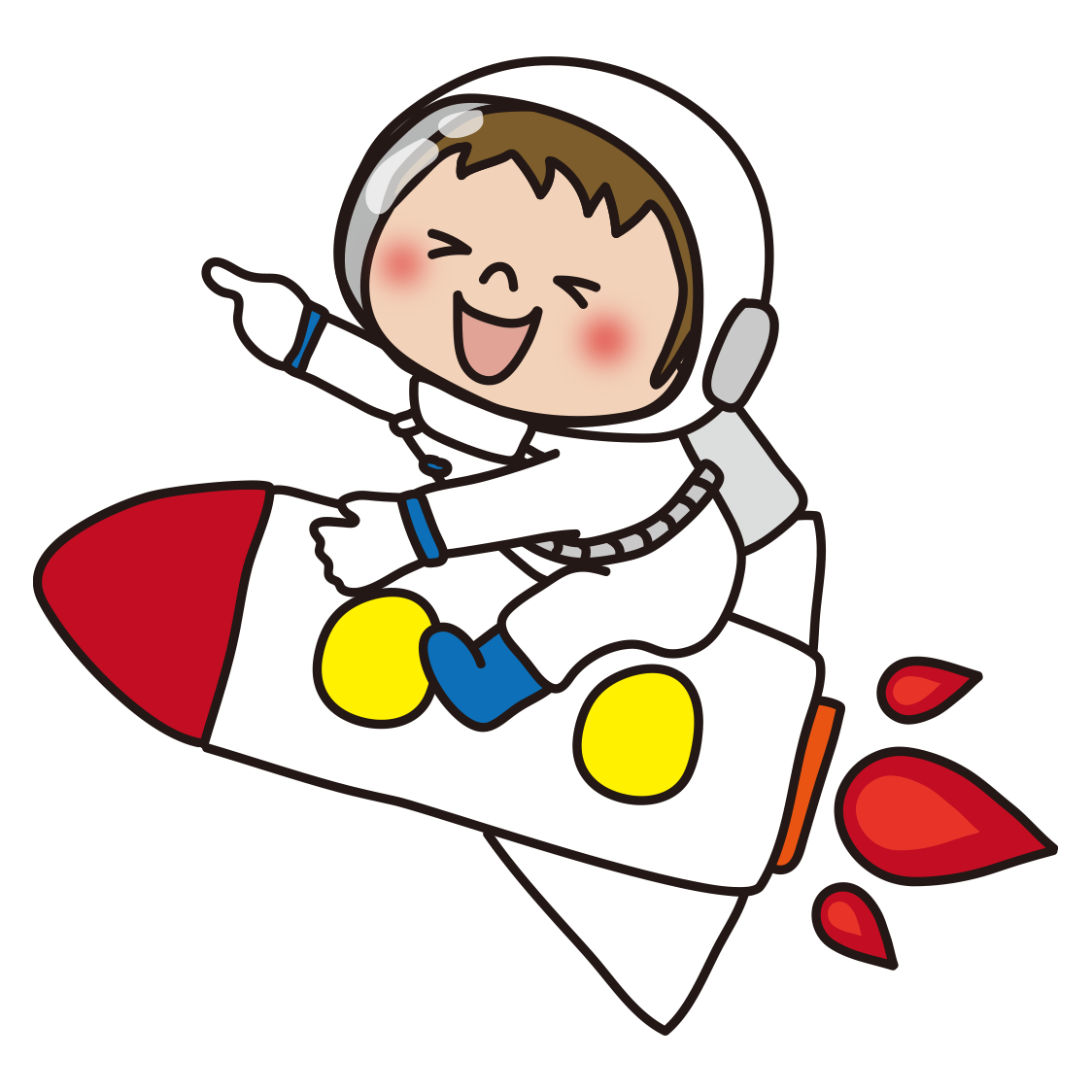 宇宙服を着てロケットに乗っている子供