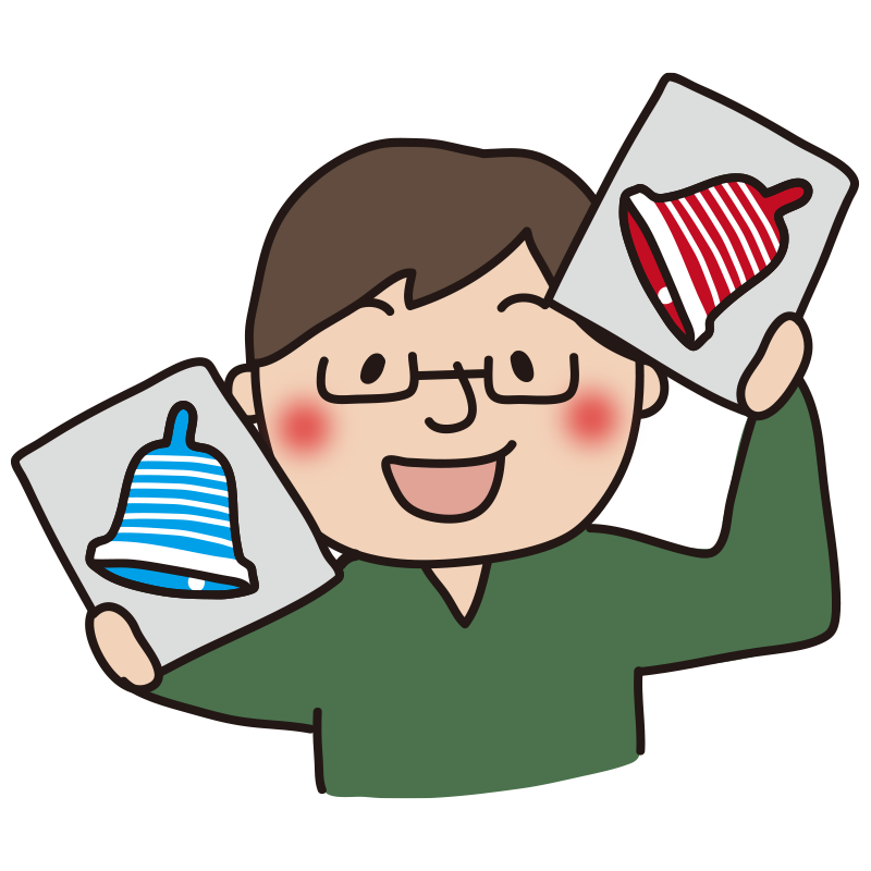 ベルマークを持っている男性