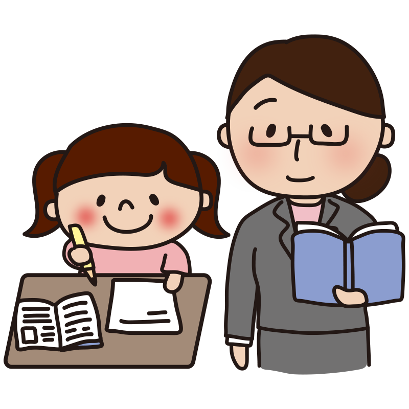 勉強する女の子を見守る眼鏡をかけた女性教師