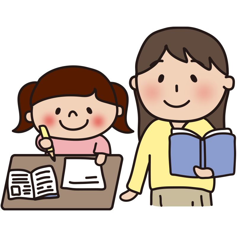 勉強する女の子を見守る若い女性教師
