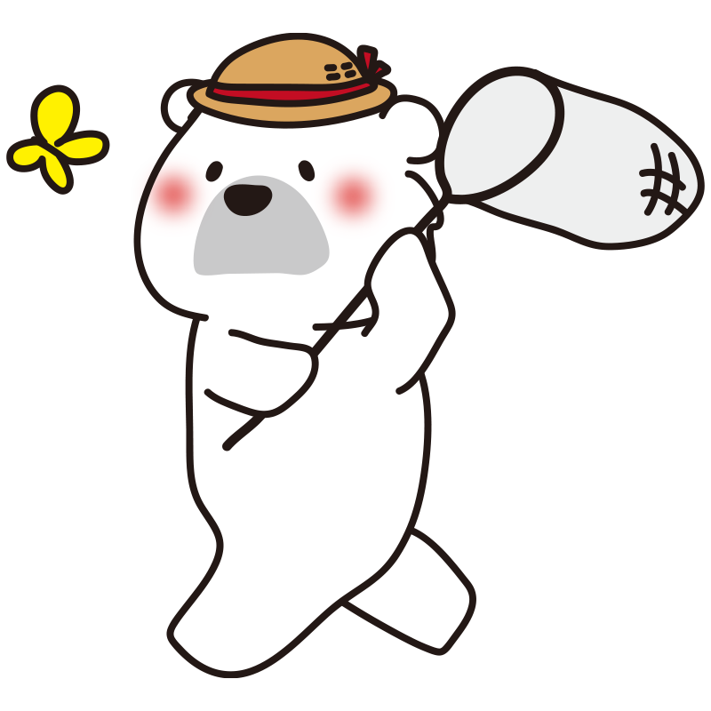 虫取り網で蝶を追いかける白クマ