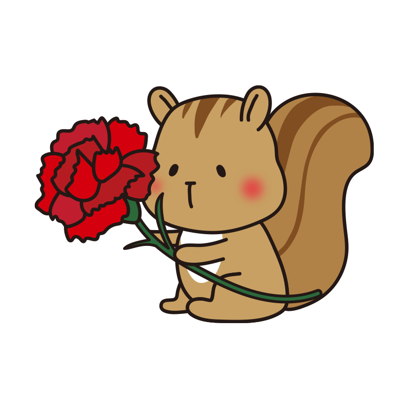 大きなカーネーションを持っているリス