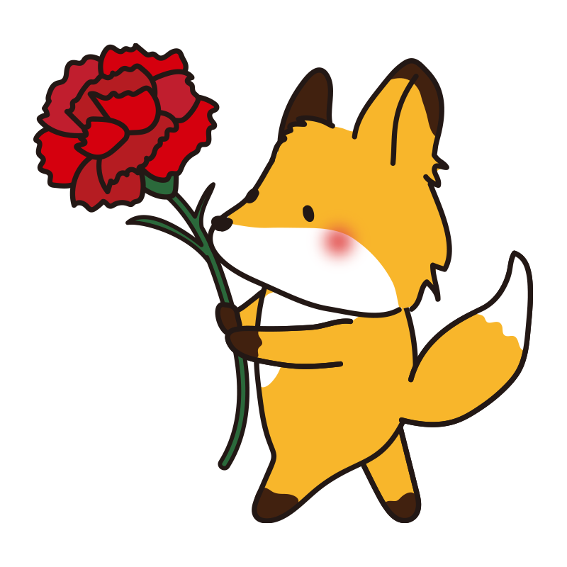 大きなカーネーションを持っているキツネ