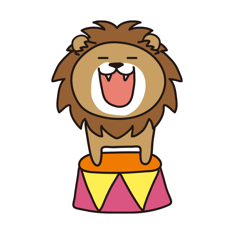サーカスで台に乗って吠えるライオン