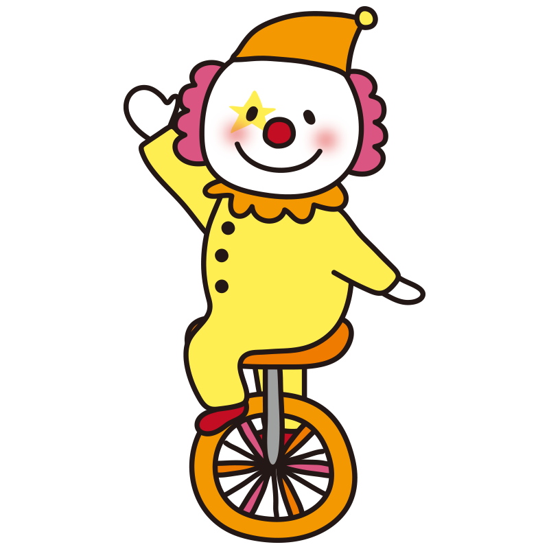 サーカスで一輪車に乗るピエロ