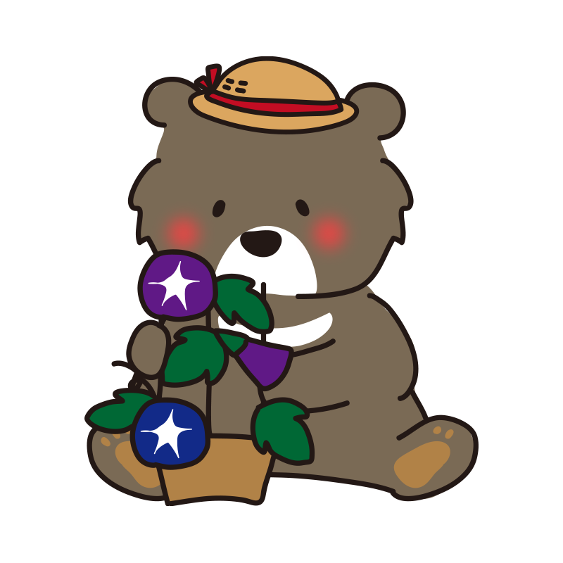朝顔を持っているクマ