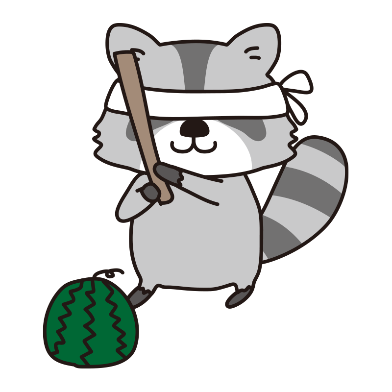 スイカ割りをするアライグマ