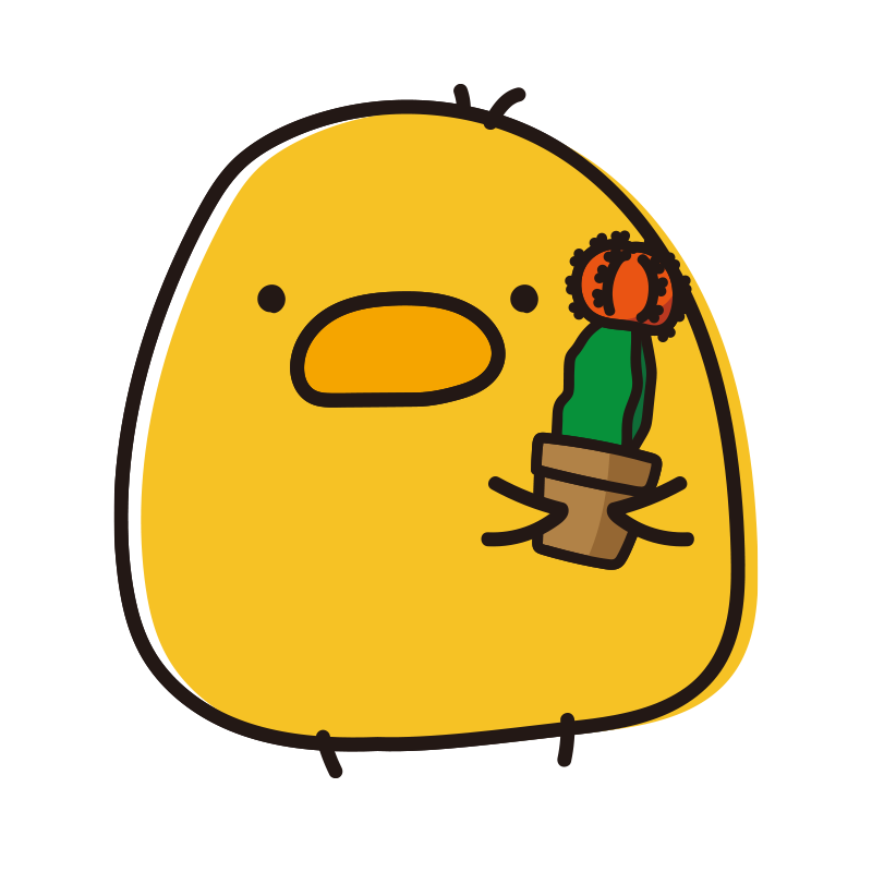 花が咲いた丸いサボテンを持っているまんまるひよこ