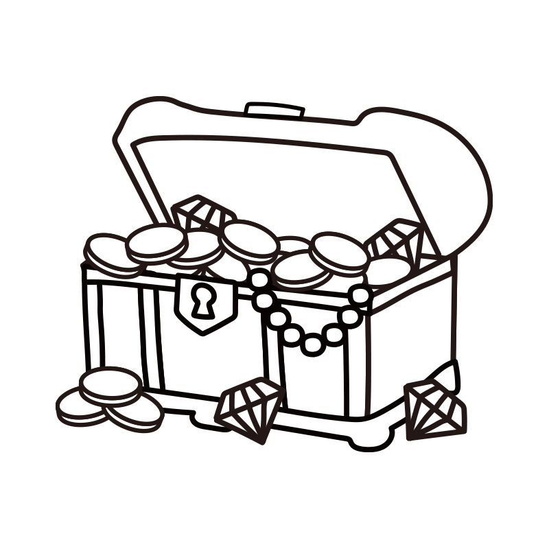 鍵が開いて宝石が出ている宝箱(白黒)