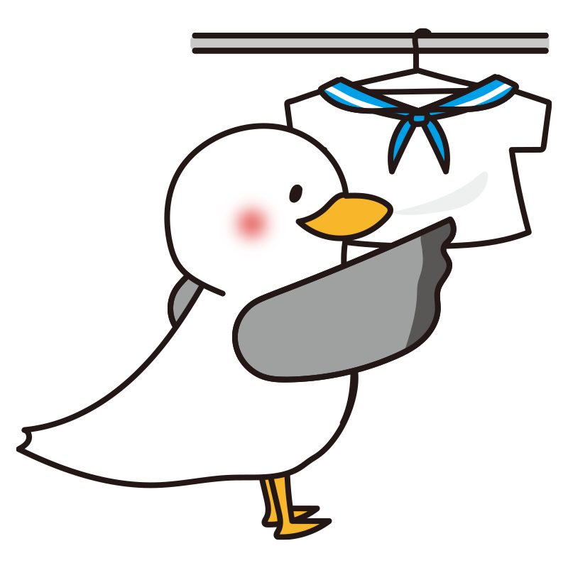 シャツを乾かすカモメの水兵さん(青)