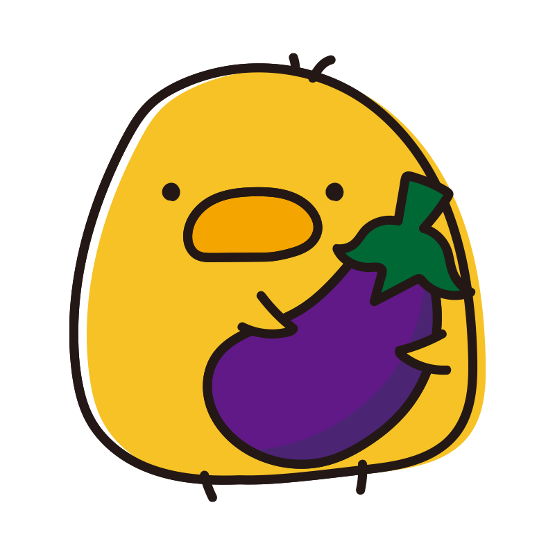 ナスを持っているまんまるひよこ