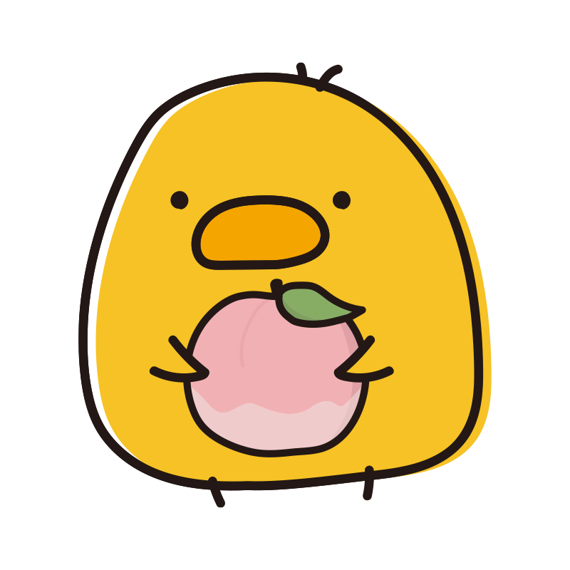 桃を持っているまんまるひよこ