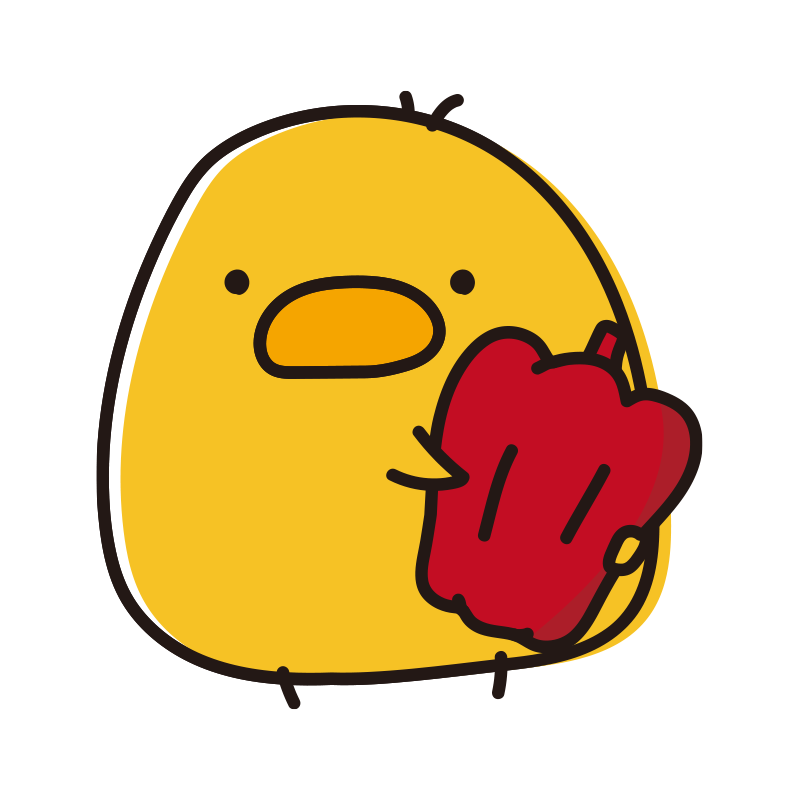 赤いパプリカを持っているまんまるひよこ