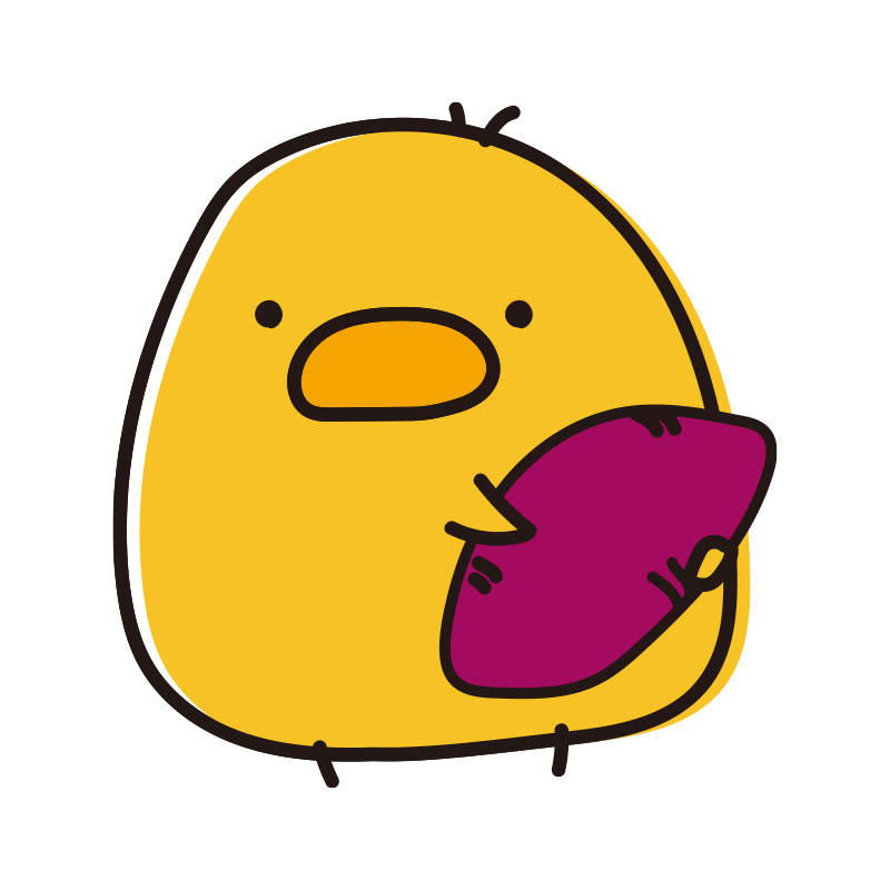 サツマイモを持っているまんまるひよこ