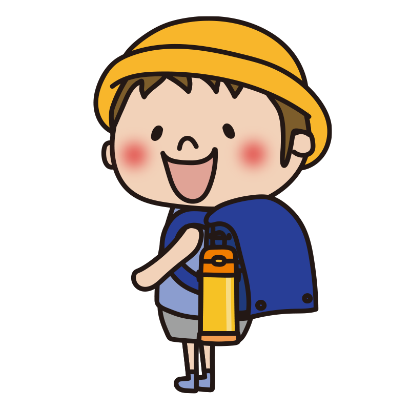 水筒をランドセルに付ける子供(男の子)