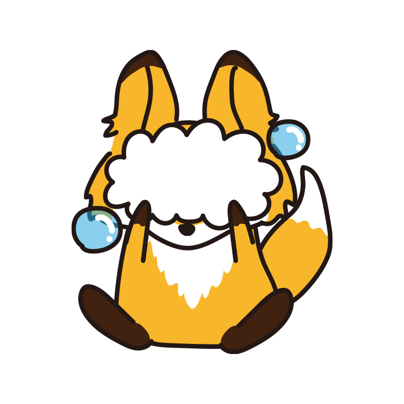 泡で顔が隠れているキツネ