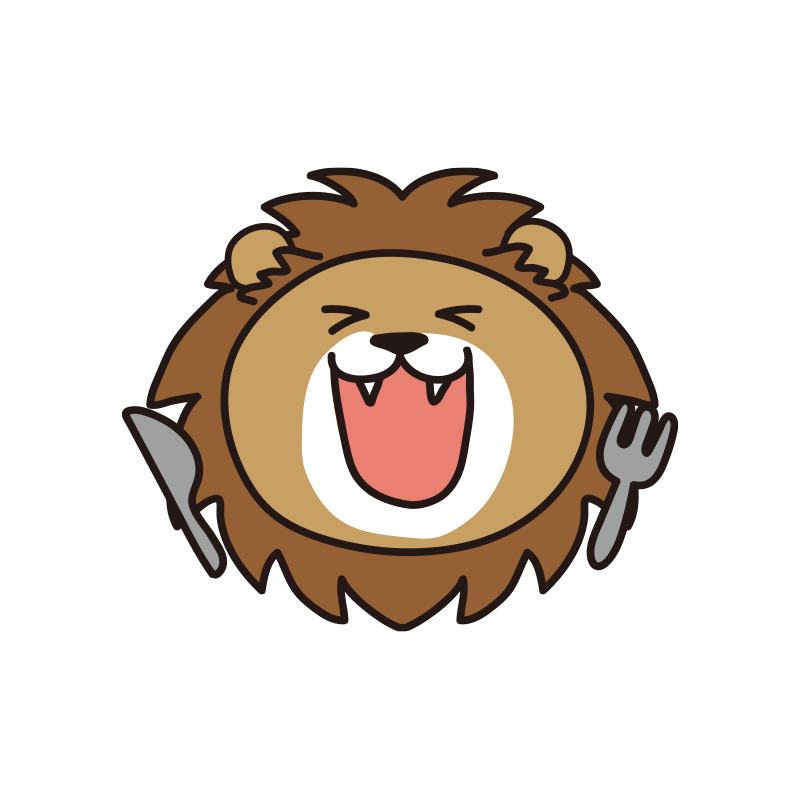 フォークとナイフを持っているライオン