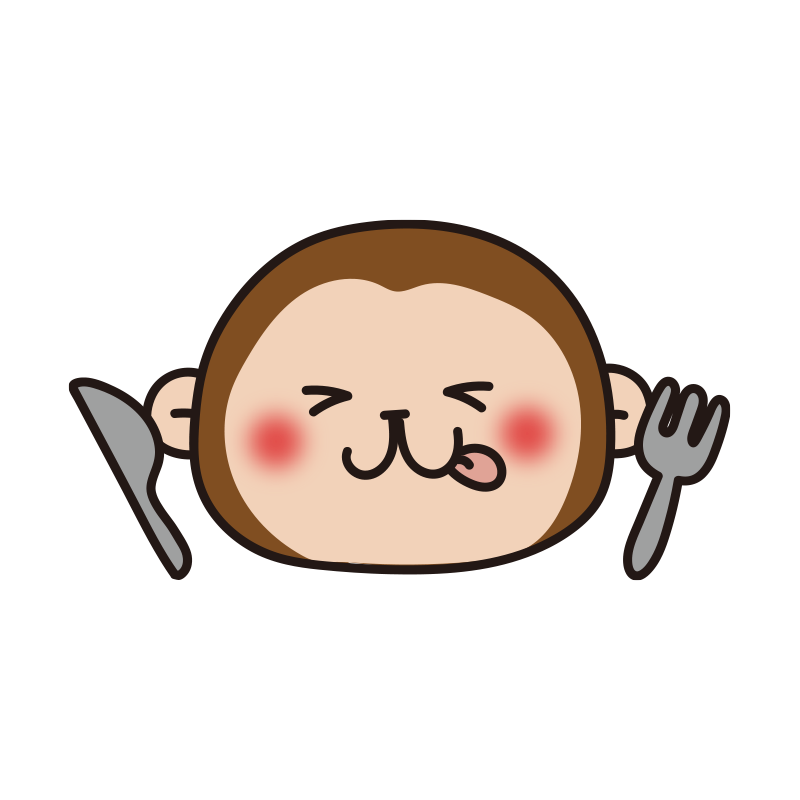 フォークとナイフを持っている猿