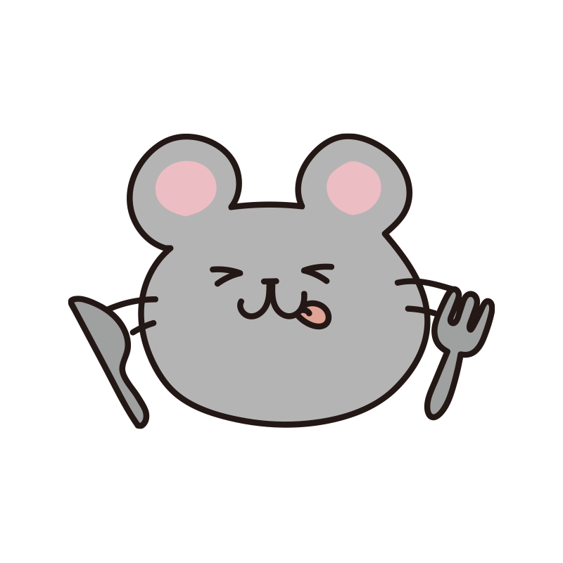 フォークとナイフを持っているネズミ