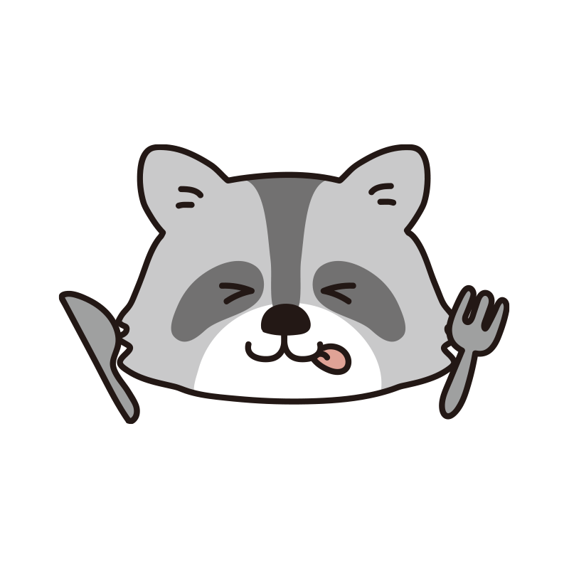 フォークとナイフを持っているアライグマ
