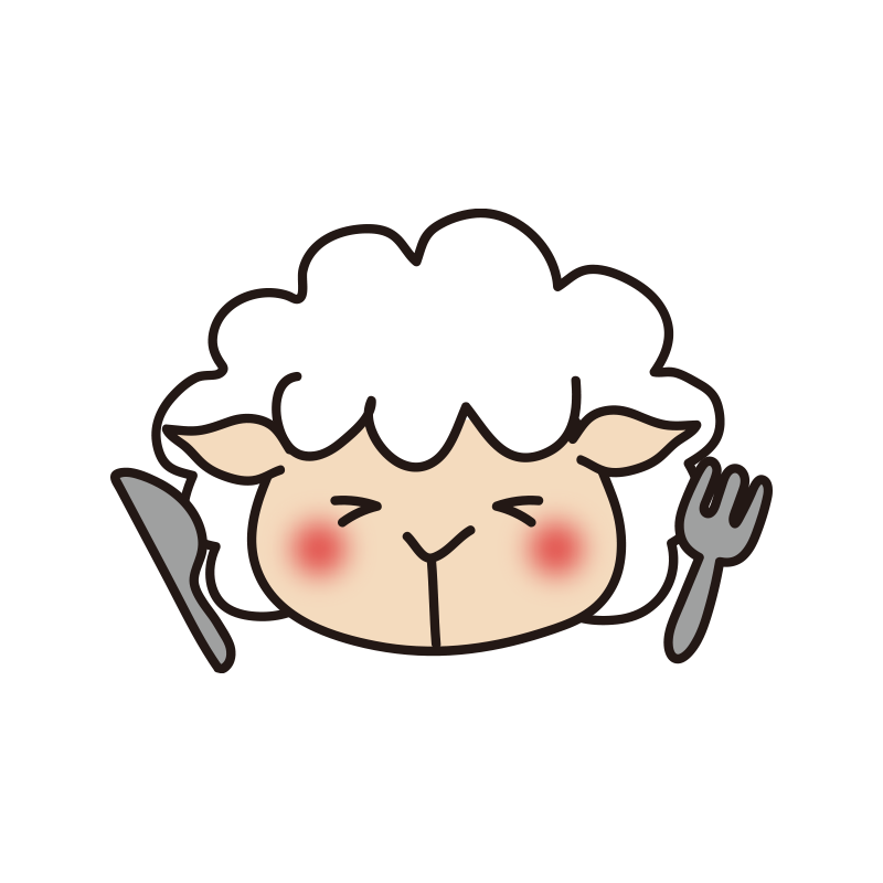 フォークとナイフを持っている羊