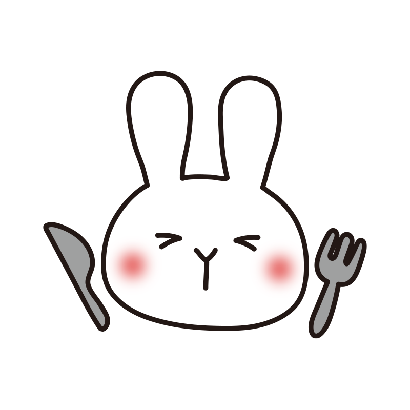 フォークとナイフを持っている白いうさぎ