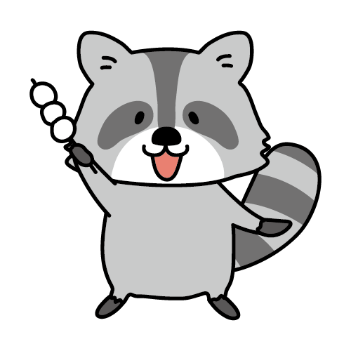 お団子を持っているアライグマ