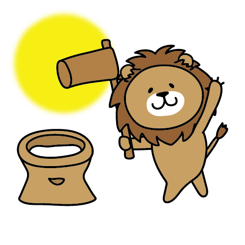 餅つきをするライオン