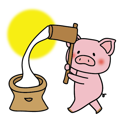 餅つきをするブタ