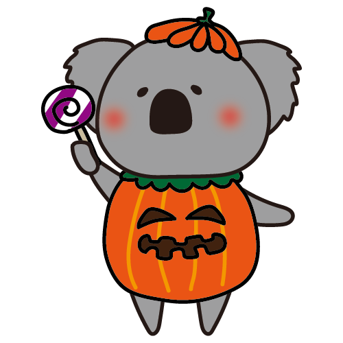 ハロウィンでジャックオランタンの仮装をするコアラ