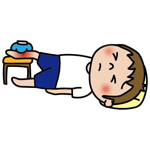 腫れた足を冷やしている子供(男の子)