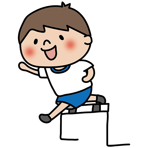 ハードル走でハードルを跳ぶ子供(男の子)