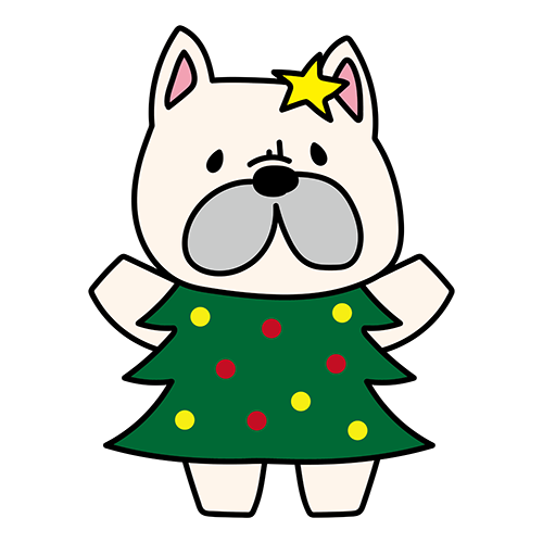 クリスマスツリーの格好をしたフレンチブルドッグ