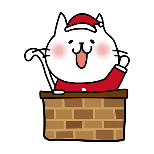 クリスマスに煙突から顔を出す白い猫