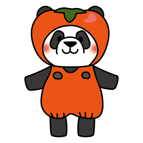 柿のかぶり物をしているパンダ