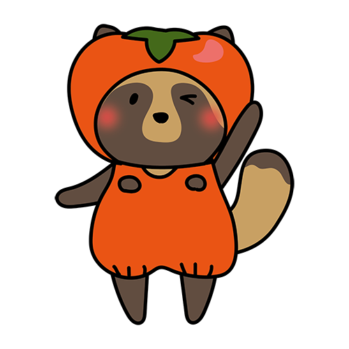 柿のかぶり物をしているタヌキ