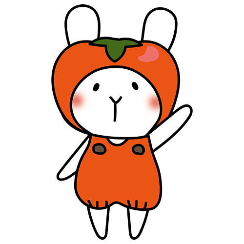 柿のかぶり物をしている白いうさぎ