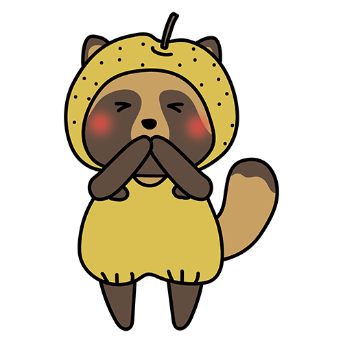 梨のかぶり物をしているタヌキ